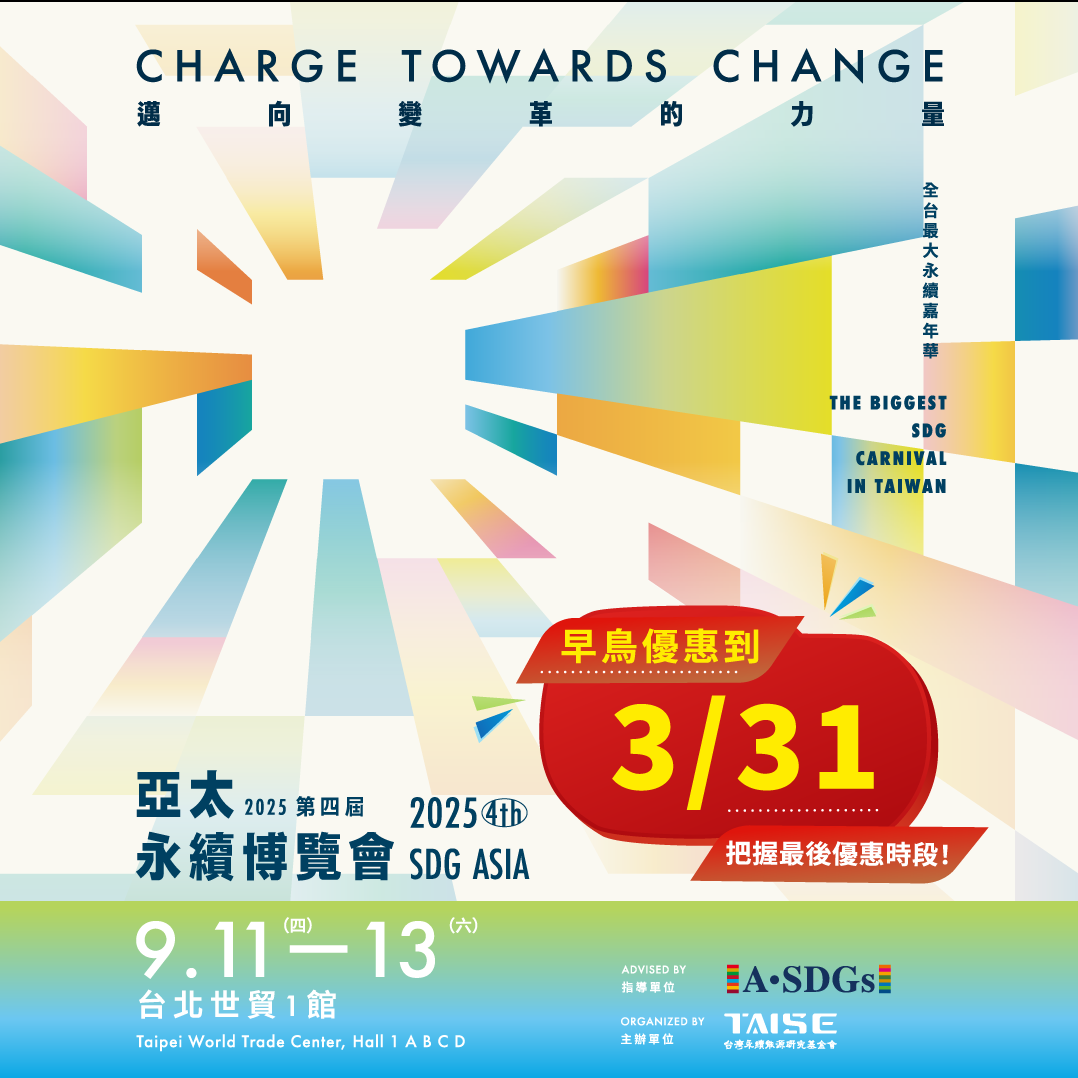 隨著全球環境變遷的挑戰日益嚴峻,我們的使命愈發明確:邁向變革的力量!在2025第四屆亞太永續博覽會中,我們以【邁向變革的力量 Charge Towards Change】為主題,將於2025年9月11日至9月13日在台北世貿一館全區舉行,旨在鼓勵社會各界共同面對變局,為未來的永續發展注入活力!這是與全球專家、企業領袖、學術機構及政策制定者 共同探索永續轉型最新趨勢與創新解決方案 的最佳機會。