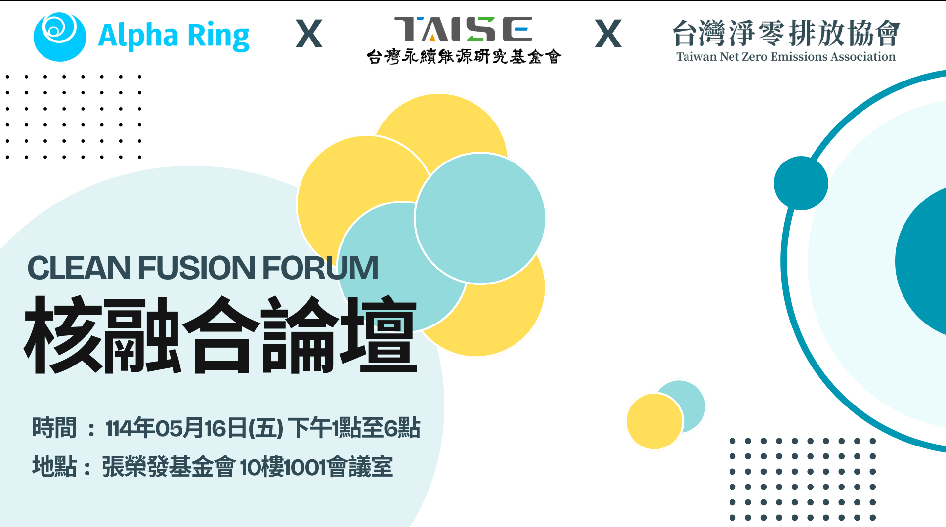 協會將於114年5月16日(五)下午1點至6點,與美商聚界潔能股份有限公司合辦核融合論壇,敬邀國內外嘉賓分享當今核融合之趨勢與技術,更結合產業需求,深度討論台灣人才下的能源新藍圖。