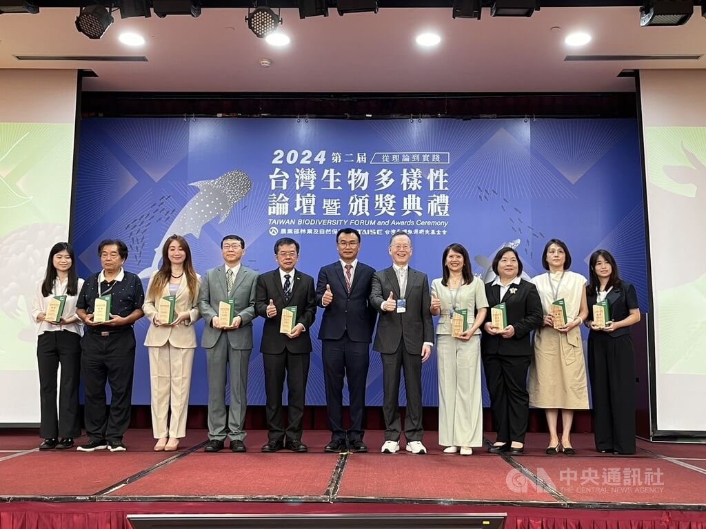 農業部林業及自然保育署與台灣永續能源研究基金會(TAISE)合辦「2024台灣生物多樣性論壇暨生物多樣性典範獎頒獎典禮」,共24件計畫參賽,選拔出15件典範案例,其中2組各誕生3金。