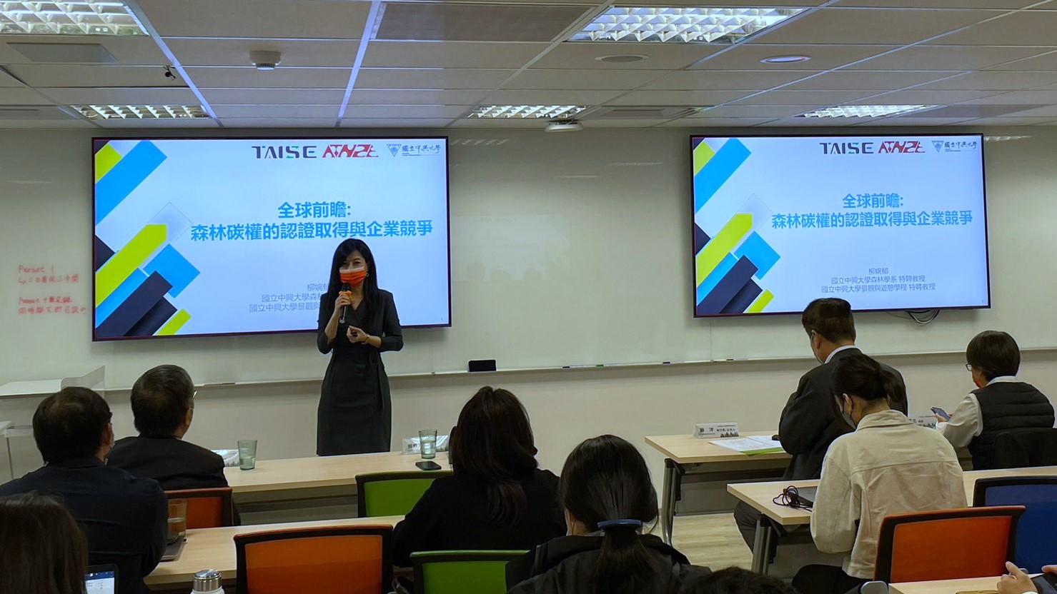 圖一、TAISE顧洋執行長(前排左三)、課程講者林務局翁儷芯組長(前排左二)、
