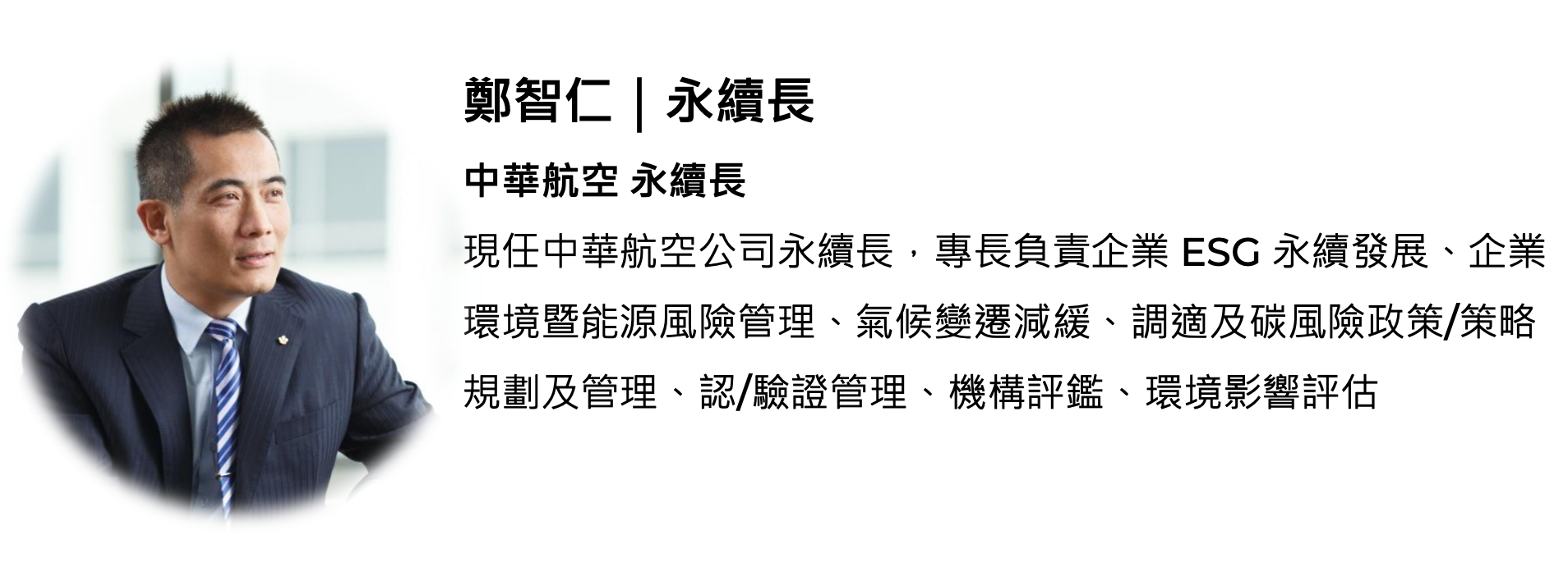 Currently serving as the Sustainability Manager at China Airlines, Zheng specializes in corporate ESG (Environmental, Social, and Governance) development, environmental and energy risk management, climate change mitigation and adaptation, carbon risk policy/strategy planning and management, certification management, organization evaluation, and environmental impact assessments.