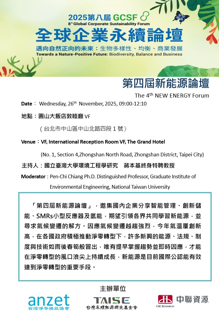 Registration Link: 2025 8th GCSF Global Corporate Sustainability Forum - 4th New Energy Forum