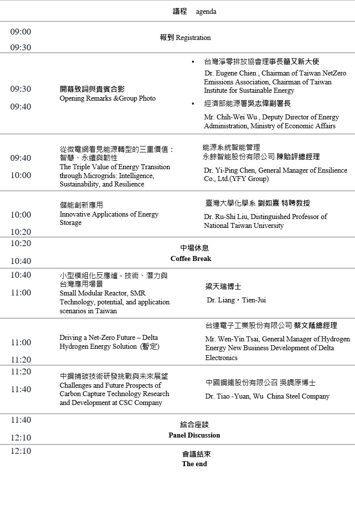 Organizers | Co-hosted by Taiwan Net Zero Emissions Association, Taiwan Institute for Sustainable Energy (TAISE), and Reccessary