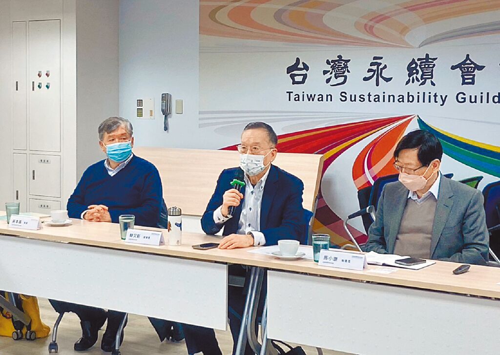 台灣永續能源研究基金會常務委員蔣本基教授(左起)、台灣淨零排放協會理事長簡又新大使、台灣淨零排放協會秘書長馬小康教授